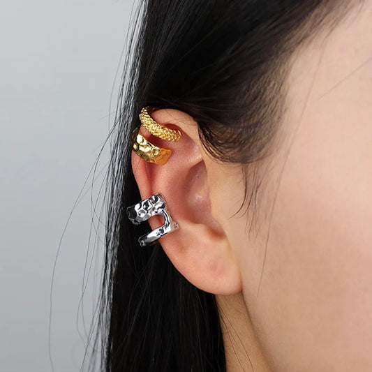 Embrace edgy elegance with TAC TheAffiliateCorner's Ear Cuff Earrings. These stylish earrings feature a sleek cuff design that effortlessly wraps around the ear, perfect for adding a touch of modern sophistication to any outfit. Crafted from high-quality materials, they ensure durability and a lasting shine, making them ideal for both everyday wear and special occasions. Elevate your jewellery collection with the contemporary and chic Ear Cuff Earrings. Shop now and experience affordable luxury.